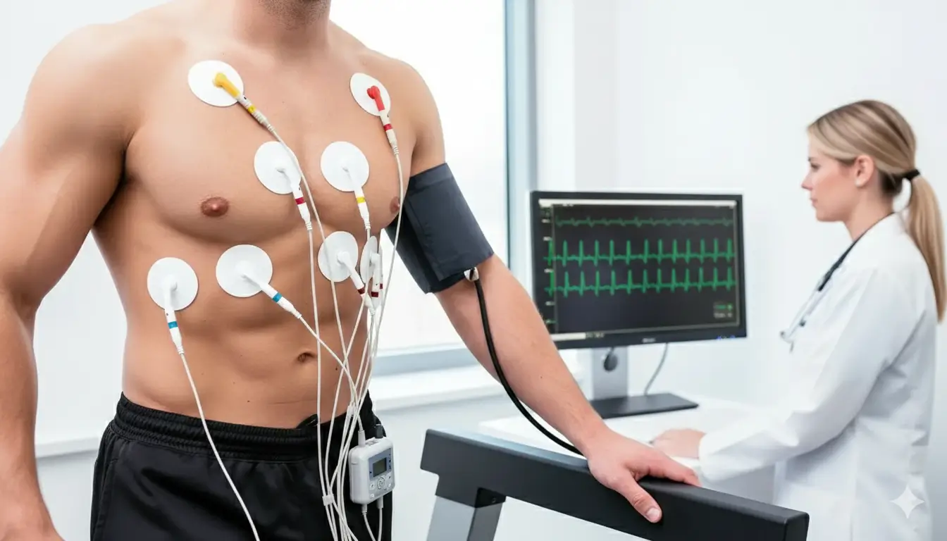 You will walk on a treadmill, starting at a slow pace. Gradually, the speed increases and the treadmill tilts to simulate walking uphill. You are always in control and can stop the test at any time if you feel unable to continue.
